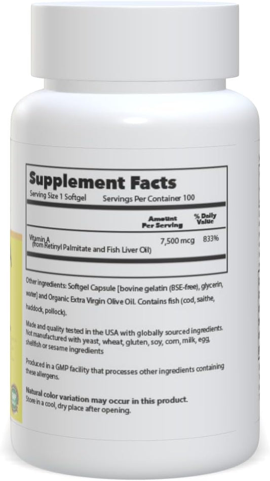 High Potency Vitamin A Softgels - 25000 IU, 100 Count by Halo Trove