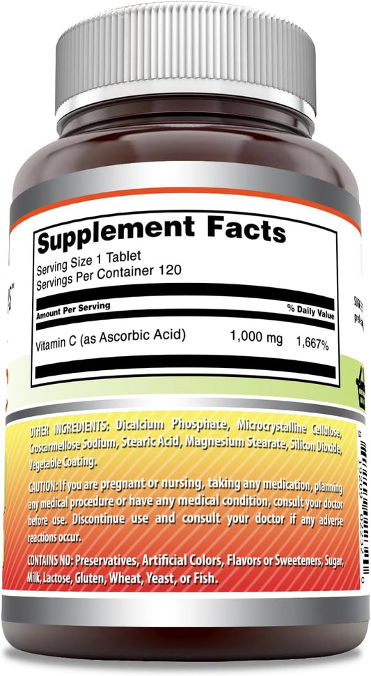 High Potency Vitamin C Supplement | 1000mg Tablets | Non-GMO, Gluten-Free | Made in USA | 120 Count