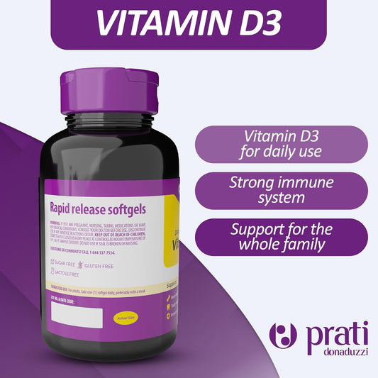 High Potency Vitamin D3 10,000 IU Softgel Capsules for Immune, Bone, and Muscle Health - Non-GMO, Gluten-Free - Easy to Swallow - Ideal for Adults & Seniors