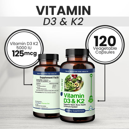 High Potency Vitamin D3 & K2 Supplement for Heart, Bone, and Immune Health - 15,000 IU D3, 90mcg K2 MK7 - 120 Veg Caps - USA Made, GMP Certified