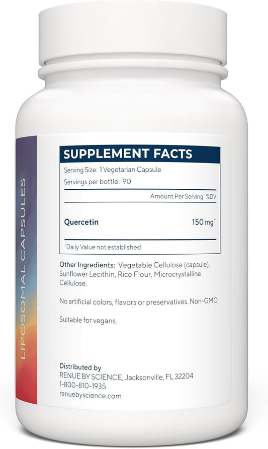 High Strength Liposomal Quercetin Supplements - 150mg per Serving - Non-GMO - Made in USA - Third-Party Tested