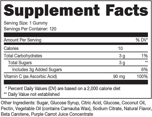High-Potency Vitamin C Gummies 90mg for Immune Support - 120 Count