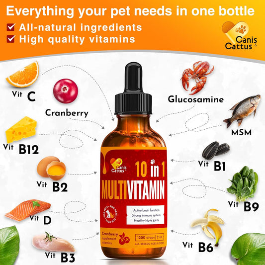 10-in-1 Canis&Cattus Liquid Multivitamin for Dogs and Cats with Glucosamine, Cranberry, HIPS & Joints, Skin & Coat Support | Allergy Relief, Coughs, UTIs | 2 ozVendor:Canis&CattusRegular price $94.99 AUDRegular priceUnit price / per-
