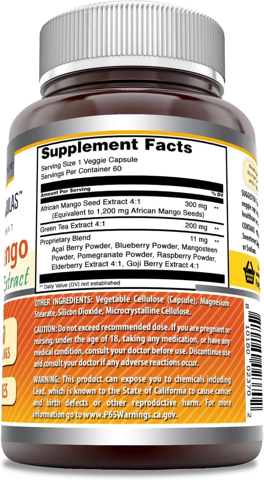 High-Quality African Mango with Green Tea Extract Supplement | 500 Mg per Serving | 60 Veggie Capsules | Non-GMO & Gluten-Free