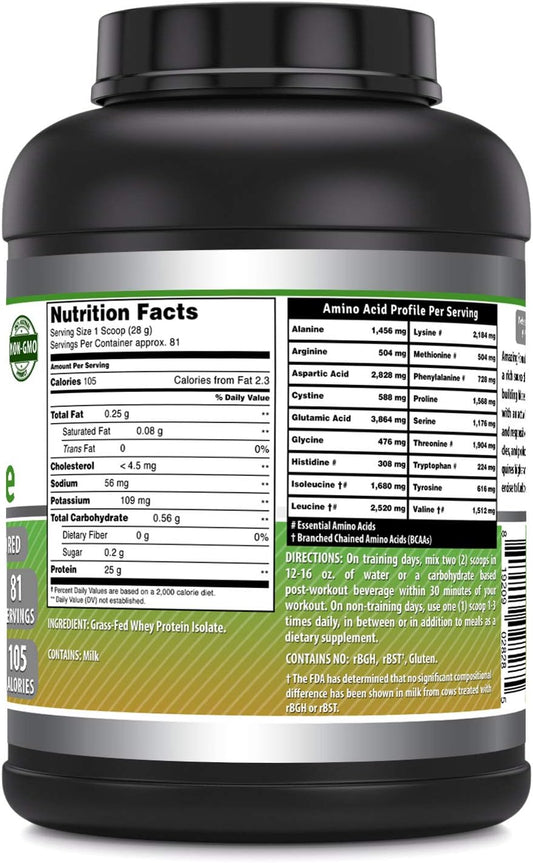 High-Quality Grass-Fed Whey Protein Isolate | 25g Protein Per Serving | 5lb (2.26kg) | 5.7g BCAA | Made in USA | Unflavored