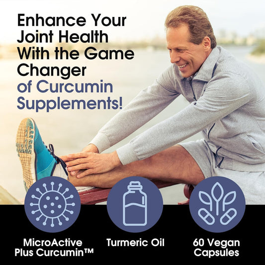 Highly Absorbable MicroActive Curcumin with Turmeric Oil Extract Capsules for Joint Health (500mg, Vegan, Non-GMO, Gluten-Free)