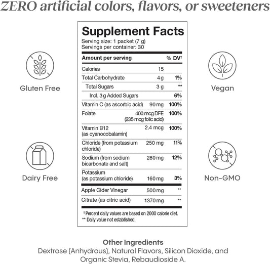 Hydralyte Sparkling Apple ACV Electrolyte Packets - Vitamin C, B12 & B9 - Low Sugar Hydration Sticks for Daily Wellness (30 Count)