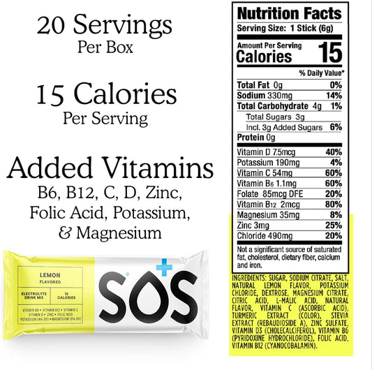 Hydrate & Energize with SOS Electrolyte Powder Drink Mix; 24 Servings, Low Sugar, Essential Vitamins, Daily Hydration