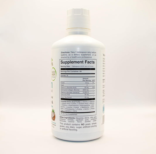 Hydrating Collagen Liquid with Hyaluronic Acid, Vitamin A, and Coconut Flavor - 32 oz. Bottle