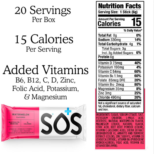 Hydration & Wellness Bundle: Electrolytes Powder Packets Variety Pack with Watermelon Flavor - Sugar-Free, 40 Pack