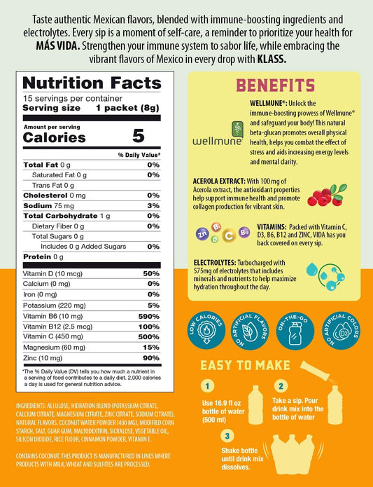 Hydration & Immunity Mango Electrolyte Drink Mix Powder Packets - 15 Single Serve Sticks, Sugar-Free, Low Calorie & Natural