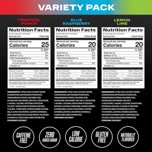 Hydration Powder Variety Pack - Electrolyte Sticks On The Go - Low Sugar Vegan Formula - 20 Single Serve Sticks