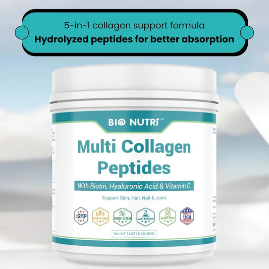 Hydrolyzed Collagen Peptides Powder with Biotin & HA - Supports Hair, Skin, Nails, and Joints - 5 Types of Collagen Peptides