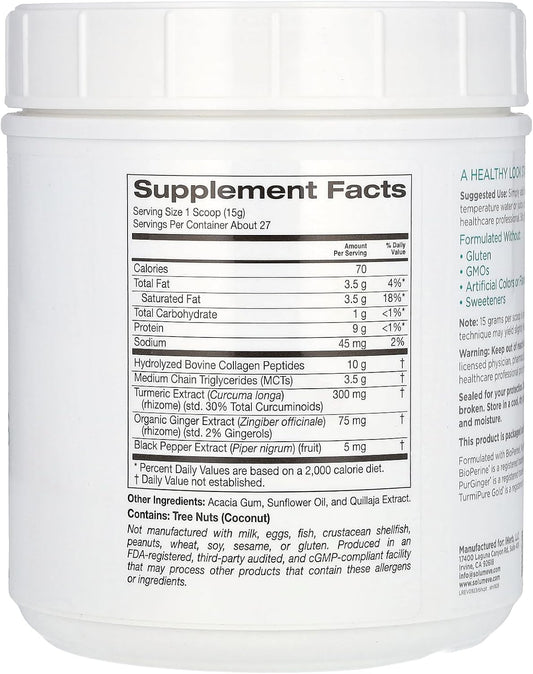 Hydrolyzed Collagen Peptides with Turmeric, MCT, and Ginger - 14.1 oz (400 g) Blend for Skin and Joint Support