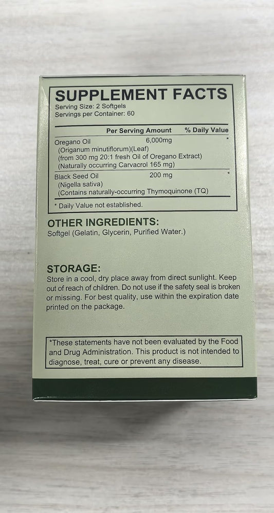 Immune Support Softgels with Oregano Oil, Garlic Extract, Olive Leaf & Black Seed Oil for Digestive Health in Men and Women