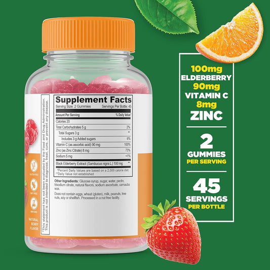 Immune System Support Gummies with Elderberry, Vitamin C, Propolis & Echinacea - 200mg Sambucus Antioxidant - Pack of 2 - Adults & Kids