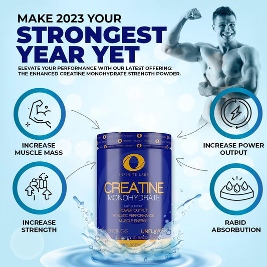 Infinite Labs Unflavored Creatine Monohydrate Powder for Muscular Power, Energy, and Focus - 300g, 60 Servings