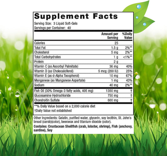Inholtra Premium Lubri-Joint Liquid Soft-Gels - 120 Count - Glucosamine, Chondroitin, Omega Fatty Acids, Vitamins C, D & E