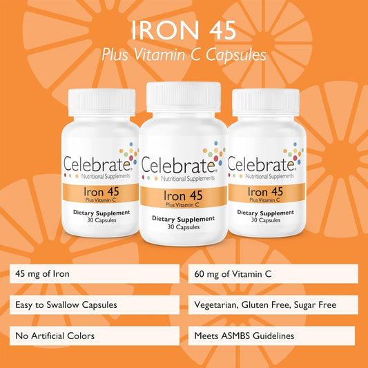 Iron and Vitamin C Supplement for Bariatric Surgery Patients - 90 Capsules, 45mg Iron, 60mg Vitamin C, Vertical Sleeve & Gastric Bypass Support