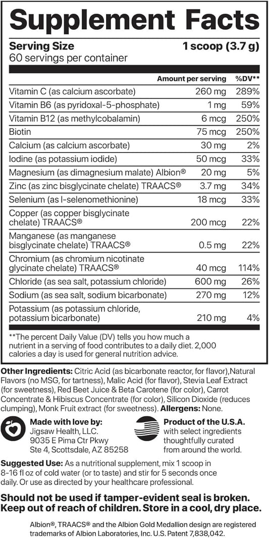 Jigsaw Health Electrolyte Supreme | Broad Spectrum of Electrolytes + Trace Minerals | Fruit Punch Flavor | 60 Servings (Jar)