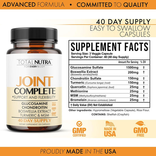 Joint & Muscle Relief Supplement with Glucosamine, Chondroitin, Turmeric, Magnesium, MSM, Malic Acid, Boswellia - Promotes Decreased Discomfort & Better Sleep - 30 Servings
