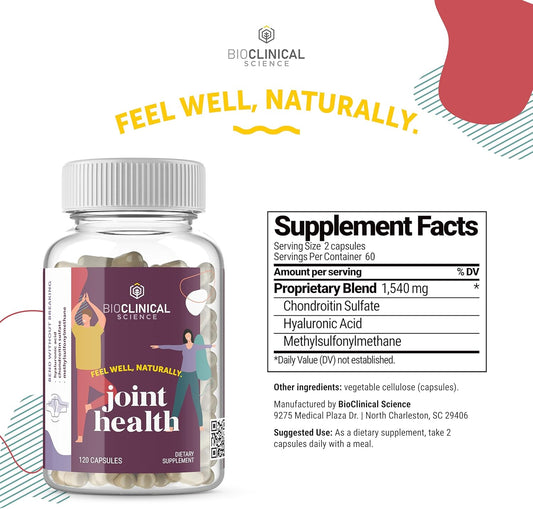 Joint Health Supplement with Chondroitin Sulfate, Hyaluronic Acid & MSM - 120 Capsules - 60 Day Supply