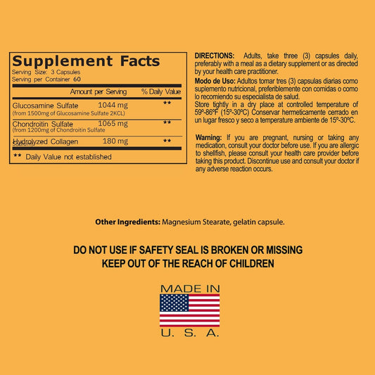 Joint Health Support: ARYMAR Glucosamine, Chondroitin & Collagen Capsules (180 Count)