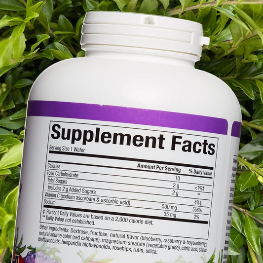 Kids Chewable Vitamin C 500mg with Blueberry, Raspberry, and Boysenberry, 180 Count, Immune Health Support for Bones, Teeth, and Gums