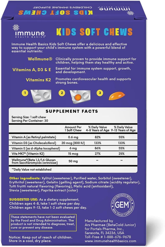 Kids Immune Support Soft Chews with Wellmune® for Daily Wellness - Tutti-Frutti Flavor, 30 Chews