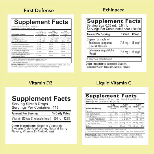 Kids Liquid Vitamins & Minerals 4-Pack - Immune Support for Children - Includes Vitamin D3, Vitamin C, Echinacea