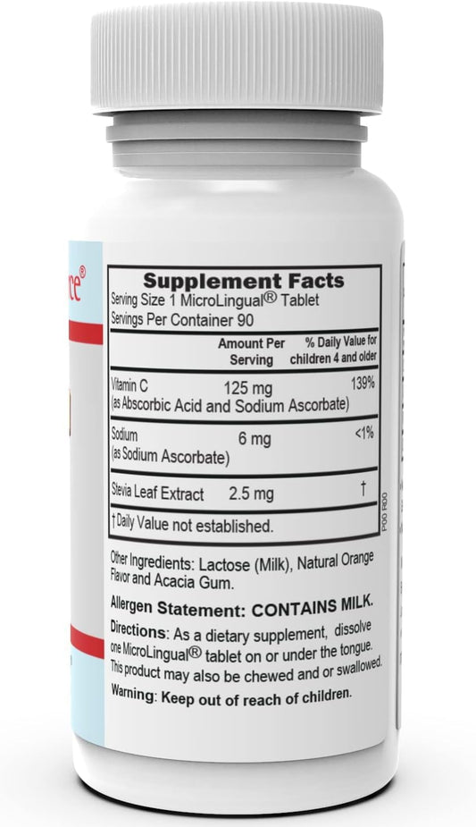 Kid’s Vitamin C (125 mg) MicroLingual Tablets - 90 Ct, Quick Dissolve Clean Melts for Immune System Support, Non-GMO Option