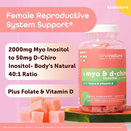 Kind Nature Women's Health Dual-Pack: Myo-Inositol & D-Chiro Gummies + High Absorption Magnesium Gummies for Calm & Sleep