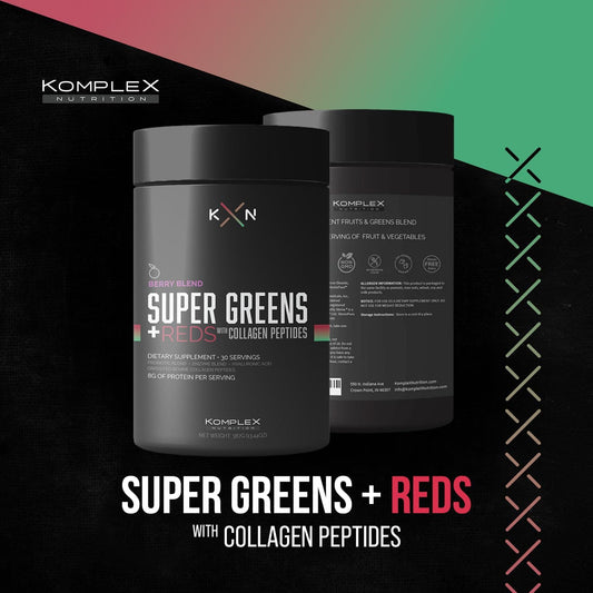 KompleX Nutrition Superfoods Greens and Reds Blend with Grass-Fed Collagen Peptides, 30 Servings - Hydrolyzed and Pastured-Raised