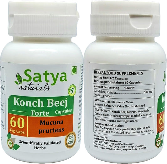Konch Beej Forte Capsules 500mg - Ayurvedic Herbal Supplement for Men and Women - Mucuna Pruriens Extract - 2 Bottles of 60 Capsules