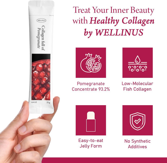 Korean Beauty Collagen Pomegranate Jelly Sticks with Fast-Absorbing Marine Collagen - 22.05 oz (Pack of 25)