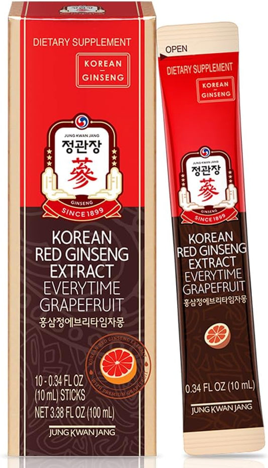 Korean Red Ginseng Extract Stick with Grapefruit Flavor - Antioxidant Energy Supplement for Men & Women, 10 Sticks
