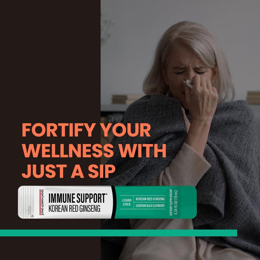 Korean Red Panax Ginseng and Elderberry Immune Support Extract Sticks - Antioxidant Supplement for Daily Wellness - 10 Count
