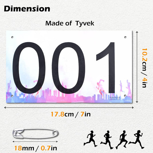 Large Numbered Tyvek Race Bibs with Safety Pins for Marathon Runners - 1-500 - TRIWONDER