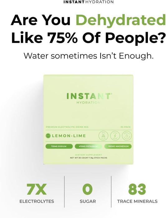 Lemon Lime Electrolyte Powder Packets with Zero Sugar - Keto, Vegan, Gluten-Free - 30 Sticks for Hydration and Recovery