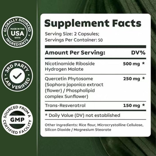 Liposomal NAD+ Supplement with Resveratrol & Quercetin for Cellular Health and Energy Boost
