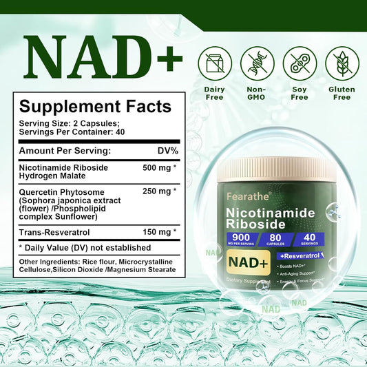 Liposomal Nicotinamide Riboside 900mg with Resveratrol & Quercetin for Vitality, Anti-Aging, Energy, Focus - 80 Capsules