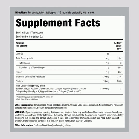 Liquid Collagen Supplement 16 fl oz - 1100mg with Vitamin C, Multi Collagen Peptides, Fruit Flavor - Non-GMO, Gluten FreeVendor:Piping RockRegular price $104.87 AUDRegular priceUnit price / per-