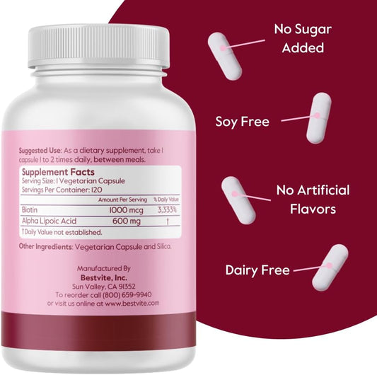 Alpha Lipoic Acid 600mg with Biotin for Enhanced Absorption - 240 Vegetarian Capsules - No Fillers or StearatesVendor:BESTVITERegular price $185.28 AUDRegular priceUnit price / per-
