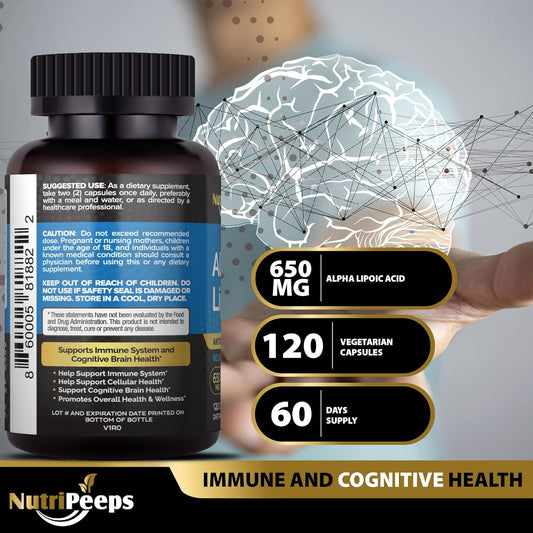 NutriPeeps Alpha Lipoic Acid Supplement - 650mg, 120 Capsules - Non-GMO Antioxidant for Immune & Cognitive HealthVendor:NutriPeepsRegular price $127.10 AUDRegular priceUnit price / per-