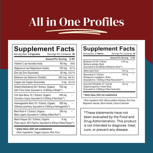 Organic Vitality Bundle: Shilajit, Berberine, Sea Moss, Ashwagandha, Resveratrol, Alpha Lipoic Acid, Quercetin - Non-GMO, VeganVendor:SOLNUVIRegular price $157.60 AUDRegular priceUnit price / per-