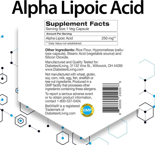 BetiVite Alpha Lipoic Acid 250 mg Supplements - 60 Vegetarian CapsulesVendor:BetiViteRegular price $119.69 AUDRegular priceUnit price / per-