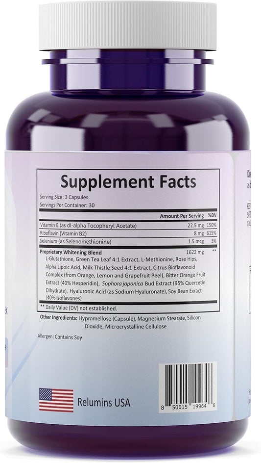 Relumins 1650mg Glutathione Complex Supplement with Hyaluronic Acid & Antioxidants - 180 Veggie CapsulesVendor:ReluminsRegular price $323.40 AUDRegular priceUnit price / per-