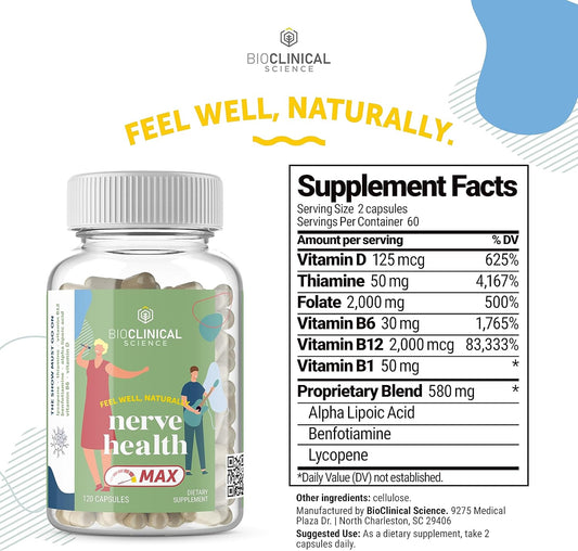 Nerve Health Max - Advanced Formula with Vitamin D, B Vitamins, and Antioxidants - 120 CapsulesVendor:BioClinical ScienceRegular price $173.69 AUDRegular priceUnit price / per-