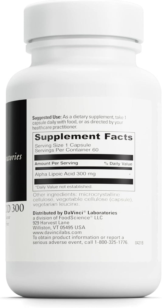 Alpha Lipoic Acid 300: Metabolism Support & Healthy Collagen - 300mg per Capsule - Gluten-Free - 60 Vegetarian Capsules