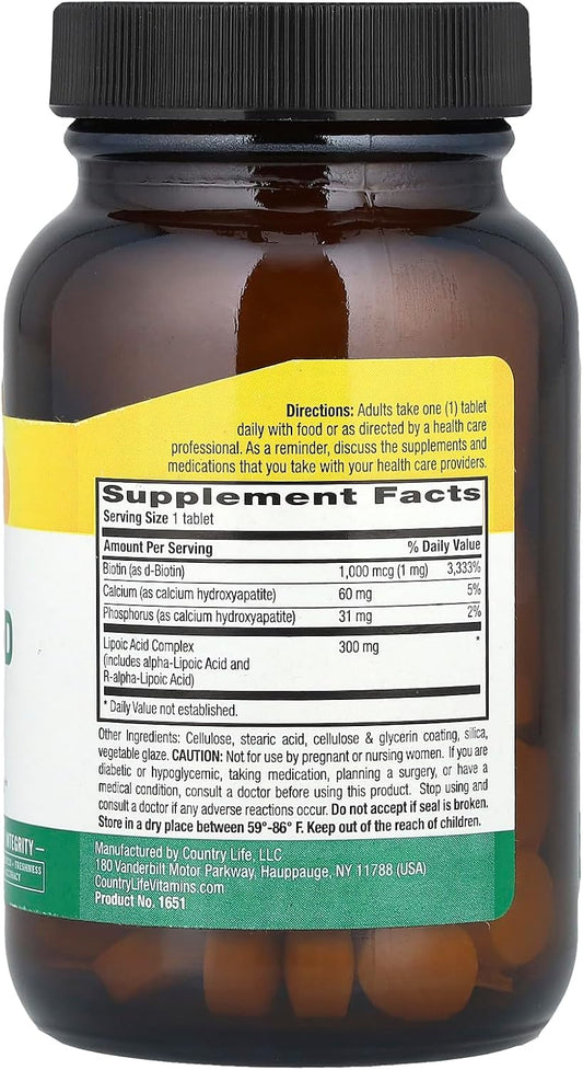 300mg Country Life R-Alpha Lipoic Acid Complex - Antioxidant Support with Alpha-Lipoic Acid & R-Lipoic Acid - No Yeast, Corn, Wheat, Soy, Gluten, Milk - Dietary Supplement